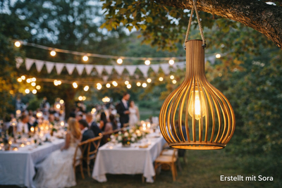 Insbesondere auf Sommerhochzeiten und Hochzeiten im Grünen oder am See setzen sie schöne Akzente. Die Lampions können auch beleuchtet werden (siehe unten). Abb. ähnlich.