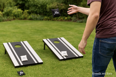 Bei dem Wurfspiel, auch Bean Bag oder Sackloch genannt, geht es darum wer es schafft die meisten Punkte zu erzielen. Wer die Mitte trifft, hat gewonnen!