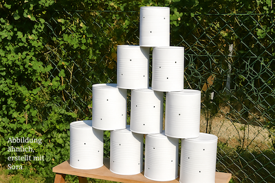 1 Set = 10 lackierte XL Dosen, 2 weiße Bälle