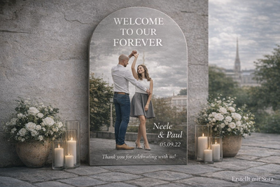 Begrüßt Eure Gäste mit einem Eurer Lieblingsfotos! Schickt uns gern Euer Wunschbild bei Buchung. Abbildung ähnlich.